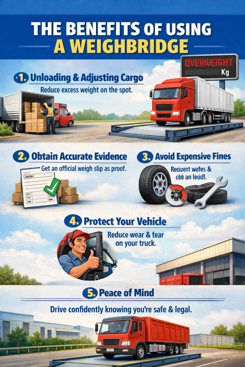 When driving on the road, especially with heavy cargo, peace of mind is crucial. If you know your weight is within the approved limits verified by a weighbridge, you'll feel calm passing through any checkpoints.
