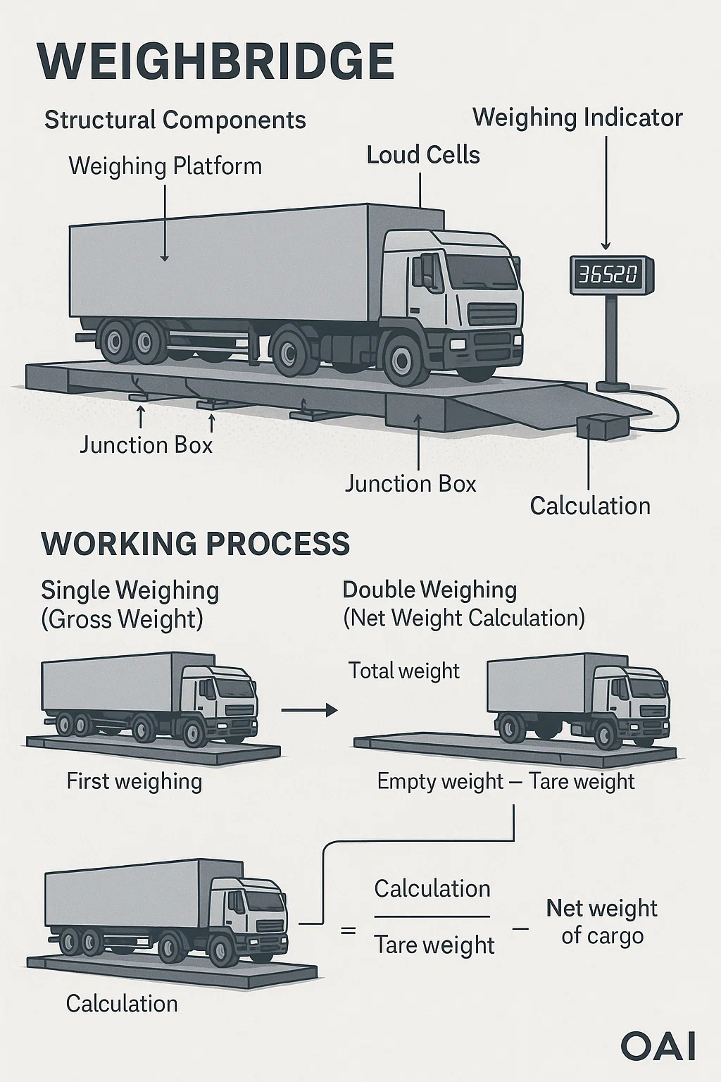 Single Weighing (Gross Weight): The vehicle drives directly onto the weighbridge for weighing, obtaining the total weight of the vehicle + cargo.